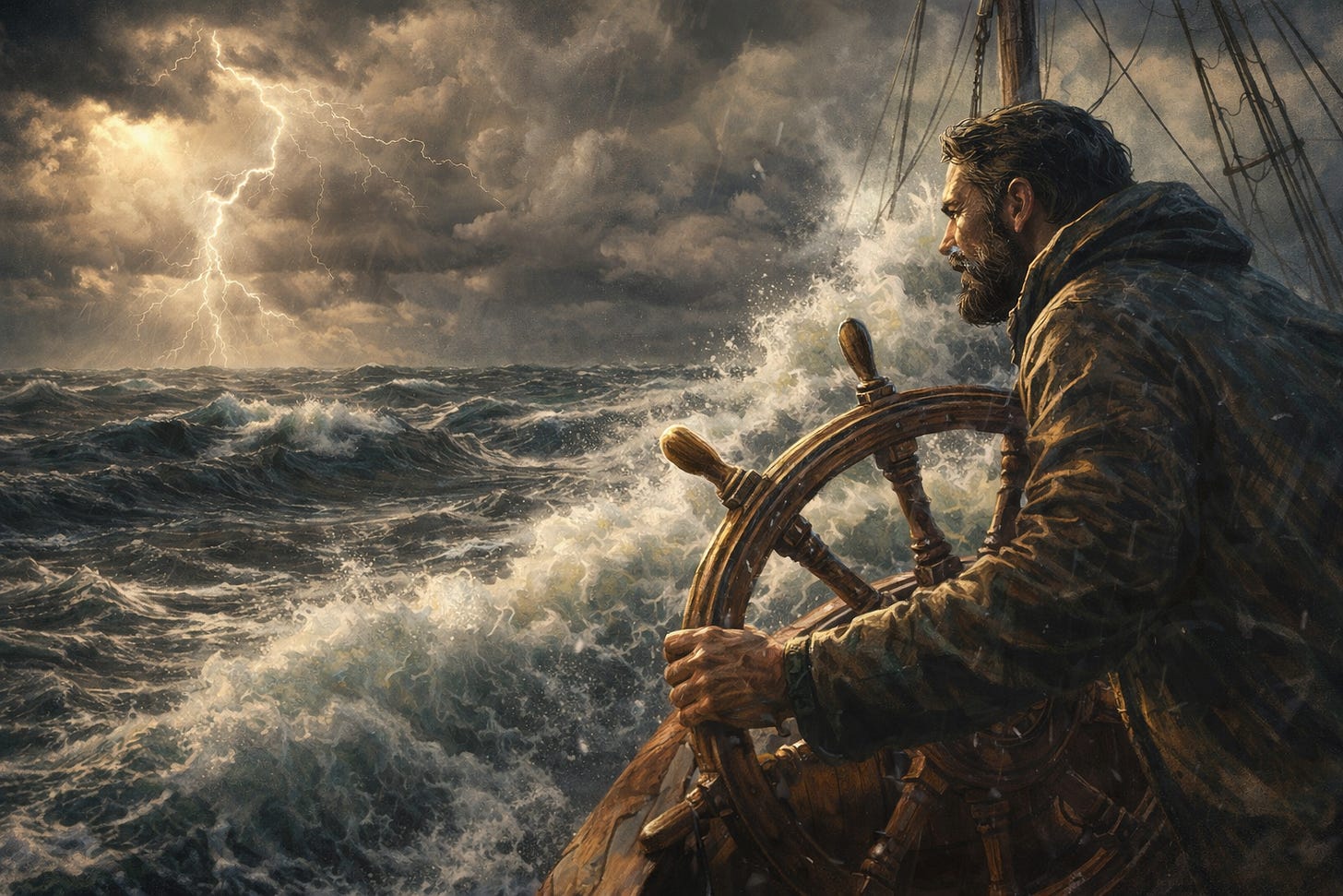 John joined the captain and the rest of the crew, bailing water out. John found the ship’s pump and started manually pumping the water. He did this non-stop from 3 a.m. until roughly noon the next day. When he could stop, he lay down, trying to rest. But there was no time. The captain took John to the wheel and strapped him to it, giving him the command to steer the ship while the rest either bailed water or tried to rig the sails.